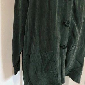 Tiar Bellomo Vintage Forest Green Blouse – Timeless Elegance Step into understated sophistication with this vintage Tiar Bellomo blouse. Crafted from lightweight black fabric with subtle texture, this piece features a structured collar adorned with delicate beading for a touch of glamour. Perfect for adding vintage flair to any outfit, this blouse is as versatile as it is chic. ✨ Details: • Brand: Tiar Bellomo • Size: S • Condition: Excellent vintage condition • Material: Lightweight and breathable fabric with a soft crinkle texture • Style: Button-down front, long sleeves, and embellished collar detail 💡 Pair it with tailored trousers for a polished look or style with jeans for a casual yet sophisticated vibe. Perfect for work, dinners, or any occasion where timeless elegance is key! 📦 Ships quickly – don’t miss out on this rare vintage find! #VintageBlouse #TiarBellomo #ClassicStyle #PoshmarkVintage #EffortlessChic