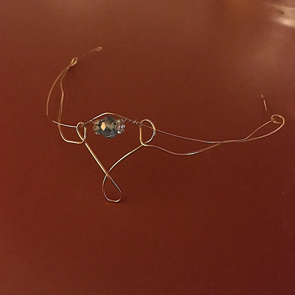 Gold, blue stone, worn for a costume, fits on smaller forehead, easy loops for Bobby pins