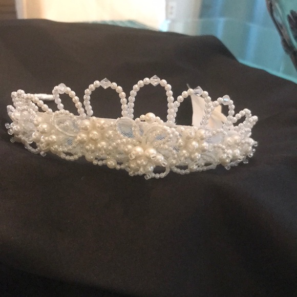 Small Pearl with crystal bead tiara white great for flower girl or communion
