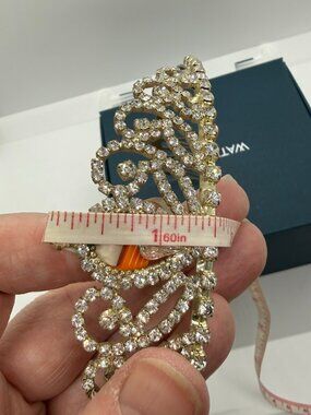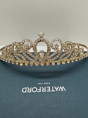 Silvertone with sparkling glass accents. Standard size tiara (approx. 5½" diameter), with 1½" highest point.
