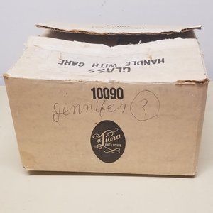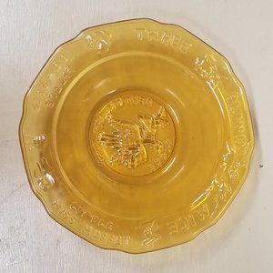 This Tiara child's dish set by Indiana Glass Co. in amber glass with a nursery rhyme theme come in a 3 piece dish set with mug, bowl & plate. Nursery rhymed theme with Humpty Dumpty & Tom, Tom on the mug, Where Are You Going My Pretty Maid? and See-Saw Margery Daw on the divided plate. Mother Goose is in the middle of the bowl, Little Little Bo Peep, Little Miss Muffet, & Three Blind Mice on bowl. This was mine in the late 1970's! Beautiful dish set looks like it is in excellent condition and comes with the original box which has some writing on the box and some wear.