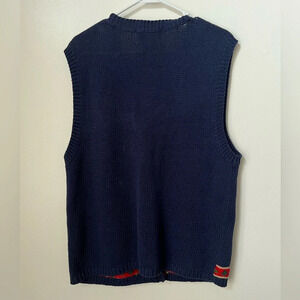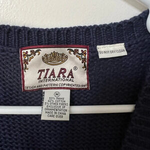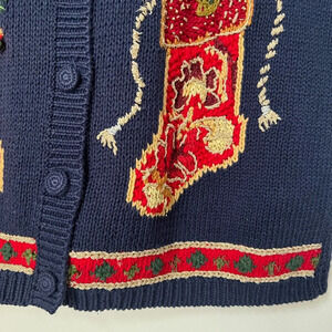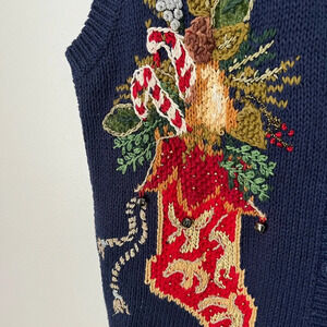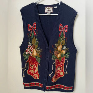 Tiara Christmas Sweater Vest with Stockings and Bells. Navy. Size M / medium but looks oversized. Gently used.