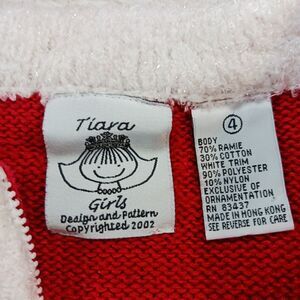 Tiara Girls Appliqué Embellished Zip-Up Christmas Santa Knit Sweater XS/CH-4. Ramie/Cotton