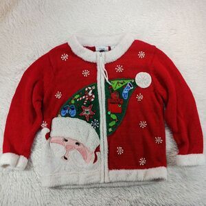 Tiara Girls Appliqué Embellished Zip-Up Christmas Santa Knit Sweater XS/CH-4