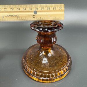 Tiara Indiana Glass Amber Sandwich Taper Candle Holder Stick Holder Votive Set 2