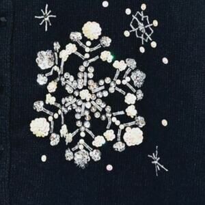 Tiara International Black Cardigan Pink Sequin Beads Snowflakes Size L Christmas