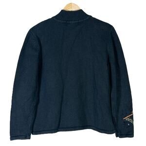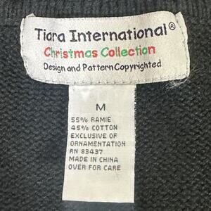 Tiara International Cardinal Bird Knit Jacket Womens M Black Zip Beaded Holiday