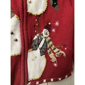 Tiara International Christmas Collection 2004 Red Snowman Cardigan Sweater M