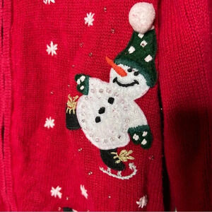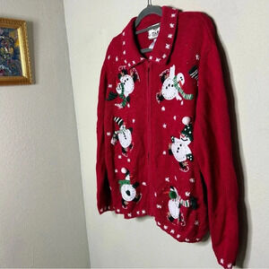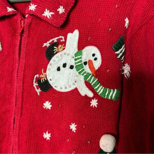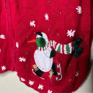 Tiara International Red Zip Up Sweater Cardigan with Snowmen Size M