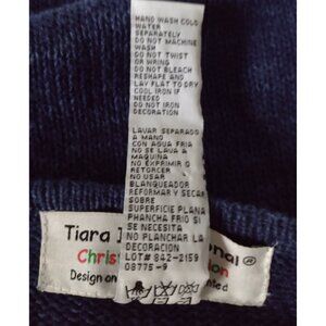 This is a fun retro full zip sweater in a heathered blue with embroidered felt reindeer that are beaded. There are sequins throughout the front. Shoulder to shoulder measures 19" x pit to pit measures 22" x shoulder to hem measures 25" x sleeve length measures 25.5".