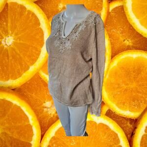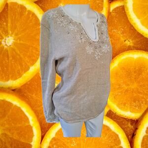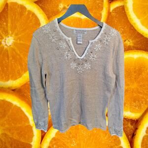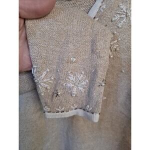 Tiara International Tan V Neck Sweater with Snowflake Design Size Small