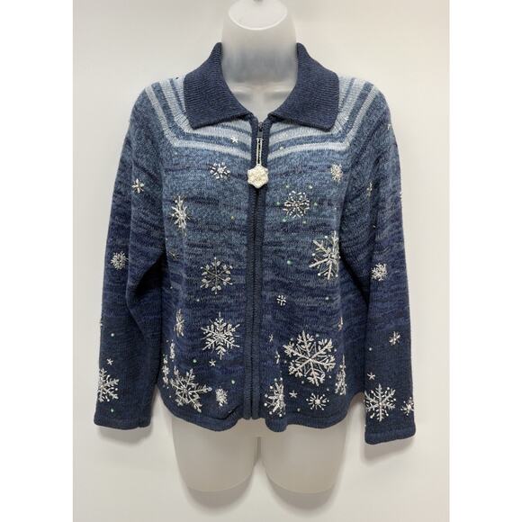 Tiara International VTG 2003 Snowflake Christmas Cardigan Sweater Petite Medium