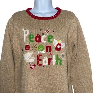 Tiara International Vintage Peace on Earth Ugly Holiday Christmas Sweater M