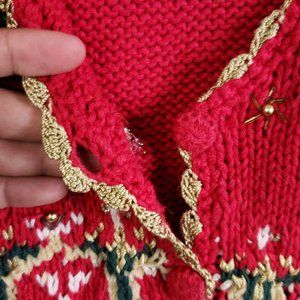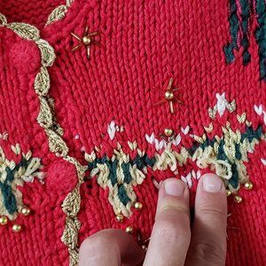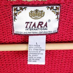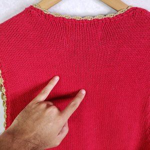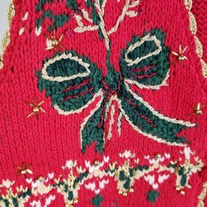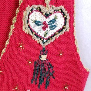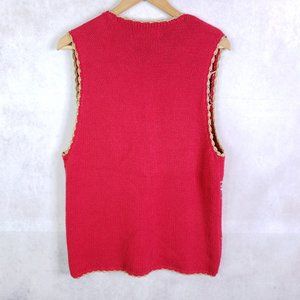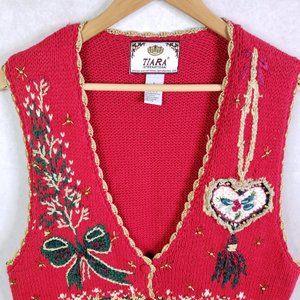 Tiara International Women's Large Red Knit Beaded Ugly Christmas Sweater Vest