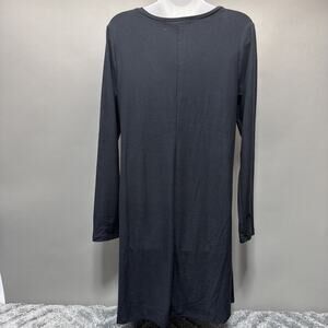 The Tiara International Women's Medium Christmas Collection HO HO HO Black Dress is a festive and stylish swing dress perfect for the holiday season. Made from a comfortable cotton blend microfiber, this midi dress features a round neck, long straight sleeves, and a unique HO HO HO pattern with ornament ball accents embellished with glitter. The black color and Christmas theme make it a versatile piece for casual occasions during the winter season. Easy to wear with a pullover style, this dress from Tiara International is a must-have for any woman looking to spread holiday cheer in style.