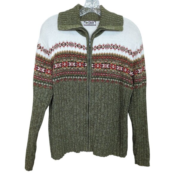 Tiara International Wool Blend Nordic Vintage Sweater With Full Zip sz L
