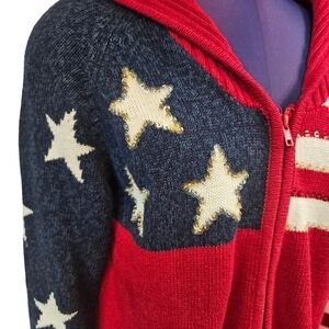 In good condition Tiara International Y2K American Flag Full Zip Cardigan Sweater Size Medium Women's.