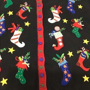 Tiara International Christmas Cardigan Sweater Size XL Holiday Sweater Stockings