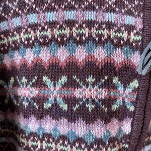 Tiara size large zip front cardigan plum fair isle layer career work fall winter