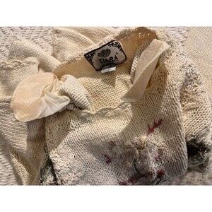 Tiara vintage pullover sweater floral embroidery long sleeve ramie cotton size M