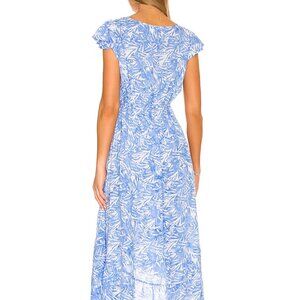 100% rayon. Made in Indonesia. Hand wash. Unlined. Pull-on styling. Plunging neckline with tie detail.Cap sleeves. Elastic waist with side seam pockets.Lightweight fabric with hi-low hem.