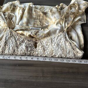 Tiare Hawaii Fluttery Cold Shoulder Ruffle Sleeves Top Size Medium Green/Cream