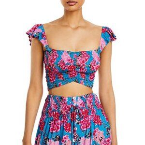 Tiare Hawaii NWT Rio Tosca (Blue/Red/Pink) HOLLIE Smocked Crop Top, One Size