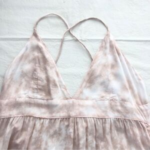 Tiare Hawaii Tie Dye Day Dream Maxi Dress Crisscross Backless in Pale Pink S/M. The Day Dream Maxi Dress speaks for it's name. Featuring a plunging back with a lace up detail, this floor length dress captivates the room. This dress flows as you walk and provides a stunning appeal wherever it is worn. Dress the Day Dream up or down to fit any occasion.