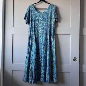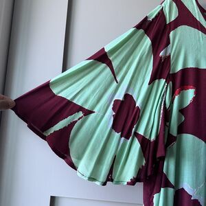 Tiare Teti Tahiti Dress Women XL Burgundy Mint Tunic Floral Rayon Hawaiian Aloha