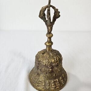 Tibet Buddhist Brass Meditation Bell With Deity Handle. Beautiful Sound. Details