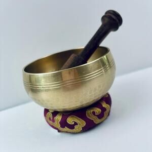 Tibetan Brass Hammered Meditation Singing Bowl Sound Healing Mallet and Cushion