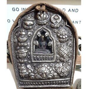 Tibetan GAU Prayer Antique Repousse Box Silver Or Brass Material