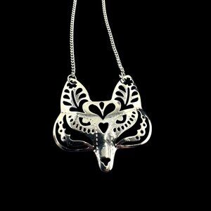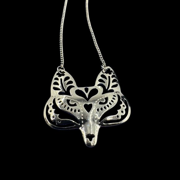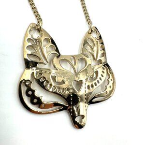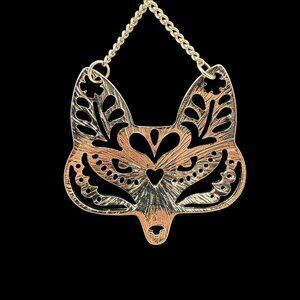 Tibetan Gold Tone Fox Mask Cut Out Bohemian Long Layering Necklace w/34" Chain