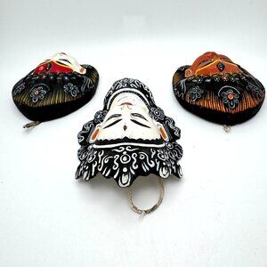 Tibetan Handcrafted Clay Masks Set of 3 Intricate Designs Vibrant Colors