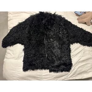 Tibetan Lamb fur Women’s Black Fur Coat Sz M Glam Regency Mob Wife Hip Length