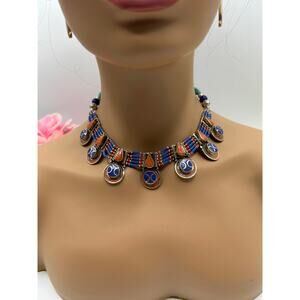 Tibetan Lapis & Coral Necklace Bracelet Earring Jewelry Set Boho Tribal