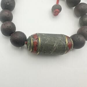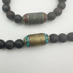Tibetan Prayer Bead Bracelets Set of 2 Casual Boho Jewlery Brown Brass Red Blue
