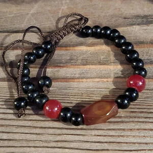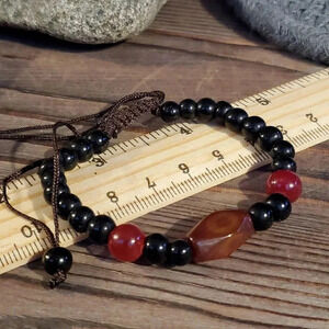 Tibetan Red and Dzi Agate Black Beads Bracelet