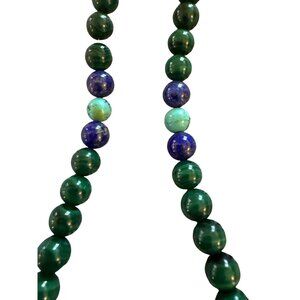 • Polished green beads with lapis lazuli centerpiece