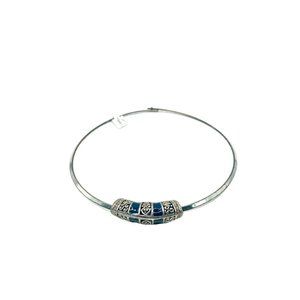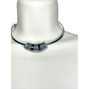 Tibetan Silver Filligree Sliding Pendant Charm Blue EnameL Necklace Choker VNTG. 90s