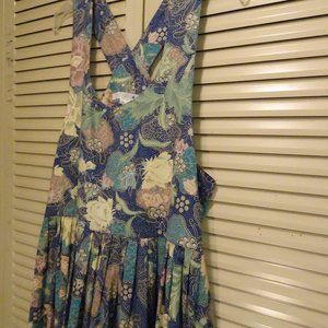 Tibetan Trader Floral Blues Cotton maxi pocket dress s