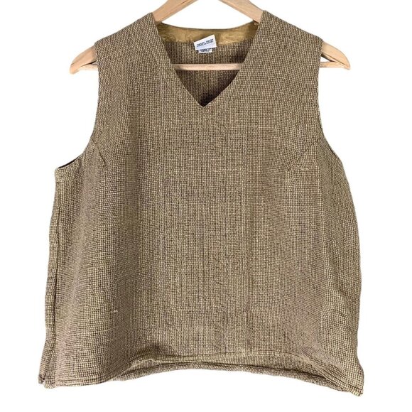 Tibetan Trader Size Medium Tank Top 100% Cotton Woven V Neck Boxy Cut Brown