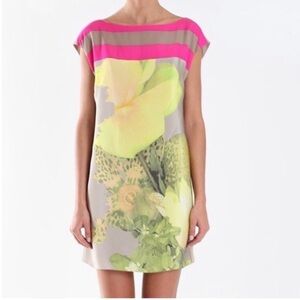 Tibi 100% Silk Floral Print Multicolor Mini Shift Dress 6