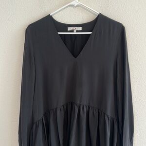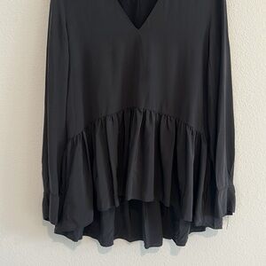 Tibi 100% Silk High Low Hem Peplum Minimalist Black Top