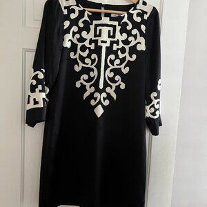 Tibi 100% Silk dress, Black with ecru pattern, size 4