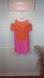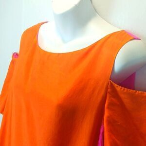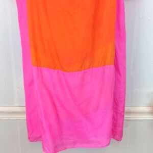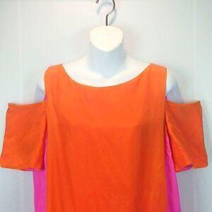 Tibi 100% silk bright pink & orange color block cold shoulder mini Sheath dress