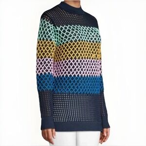 Tibi $475 Striped Crochet Knit Sweater Tunic Pullover High End Size Small