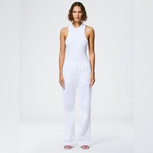 White track pants with internal drawstring and asymmetrical back pockets. So fun! Never worn.