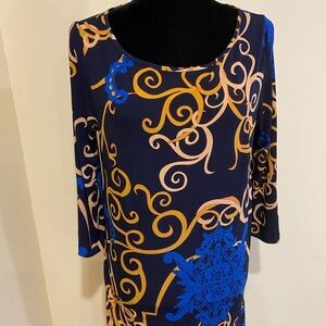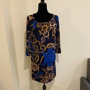 Tibi New York Arabesque Three quarter Sleeve Shift dress Blue and orange color women’s size Small
