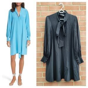 Tibi Arielle Tie Front Silk Shift Dress Black size XS